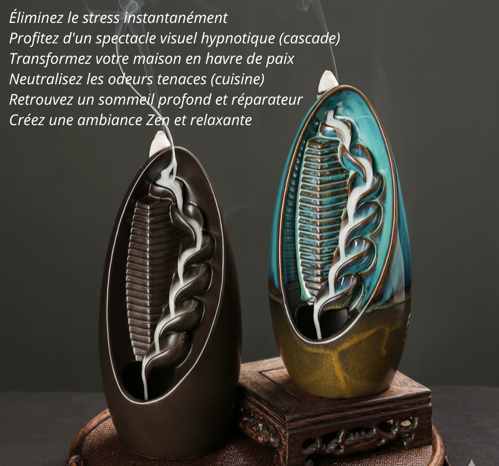 Guide d'utilisation du Brûleur d’encens en céramique “Eaux de montagne” à effet cascade :