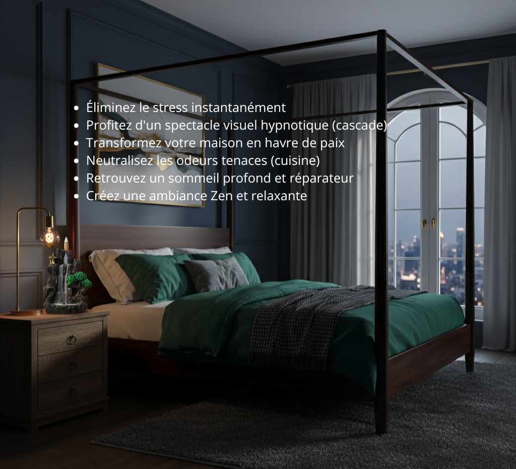 - Ajustement si nécessaire : Assurez-vous que le cône brûle correctement pour créer l'effet cascade apaisant.