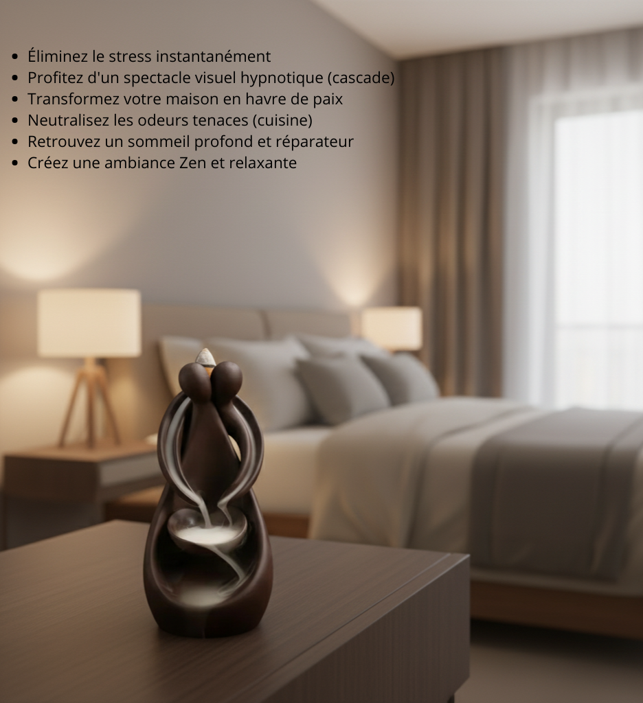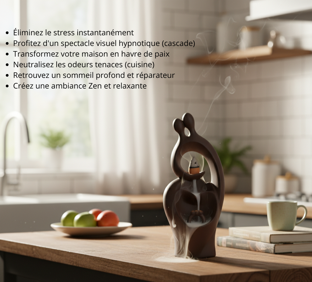 - Utilisation : Allumez un cône d'encens et placez-le sur le brûleur. Profitez du spectacle apaisant de l'effet cascade.